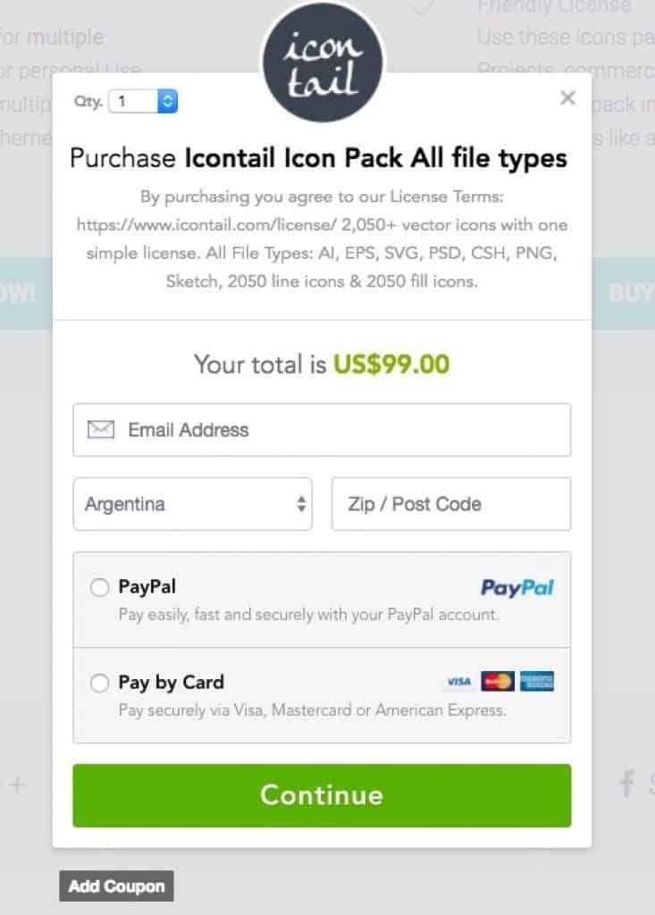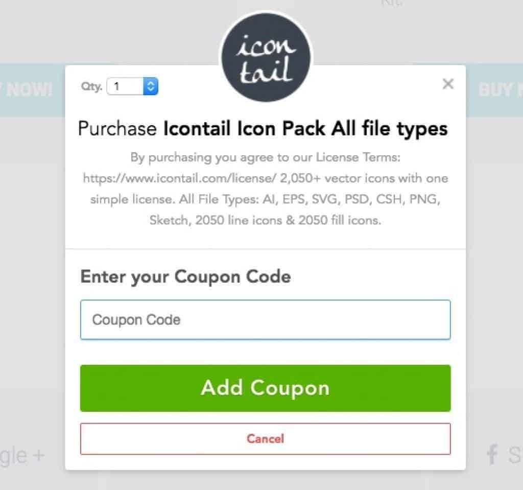 - Done! You have purchased an awesome Icontail Icon Pack for half its regular price!