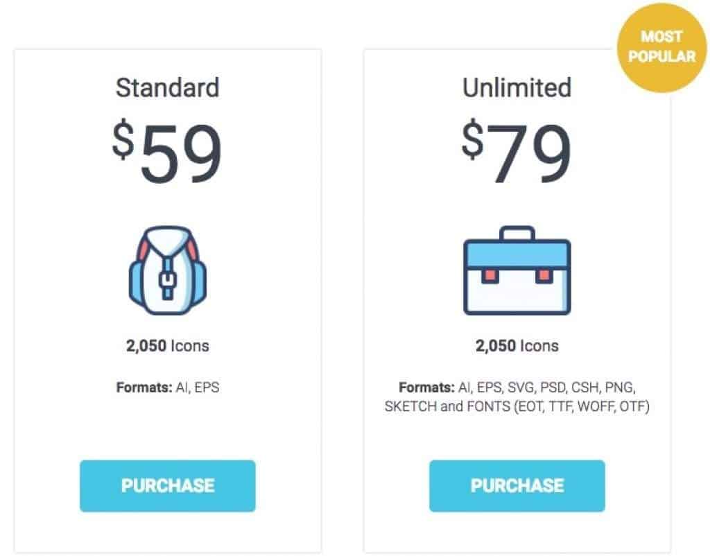 - Select your Standard or Premium Icon Pack, and hit the green “Buy Now” button that corresponds to it.